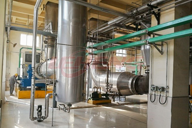 樂(lè)恒針對(duì)物料的情況,設(shè)計(jì)了一套雙效強(qiáng)制循環(huán)MVR蒸發(fā)結(jié)晶系統(tǒng),配備兩臺(tái)樂(lè)恒離心式蒸汽壓縮機(jī)。一效采用降膜蒸發(fā),將出料濃度控制在結(jié)晶濃度以下,具有更好的節(jié)能效果。二效采用強(qiáng)制循環(huán)蒸發(fā)結(jié)晶出鹽,有效將廢水中的無(wú)機(jī)鹽結(jié)晶分離出來(lái)。