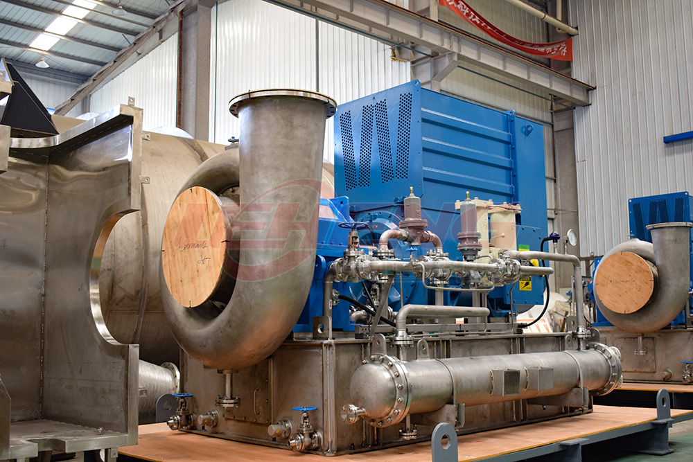 該項(xiàng)目配套的壓縮機(jī)為樂(lè)恒研發(fā)生產(chǎn)的增速箱式蒸汽壓縮機(jī),壓縮機(jī)溫升20℃。增速箱式離心式壓縮機(jī)由電機(jī)與增速齒輪箱配合進(jìn)行驅(qū)動(dòng),通過(guò)精密的葉輪設(shè)計(jì)可使壓縮機(jī)工作效率可以達(dá)到85%以上。