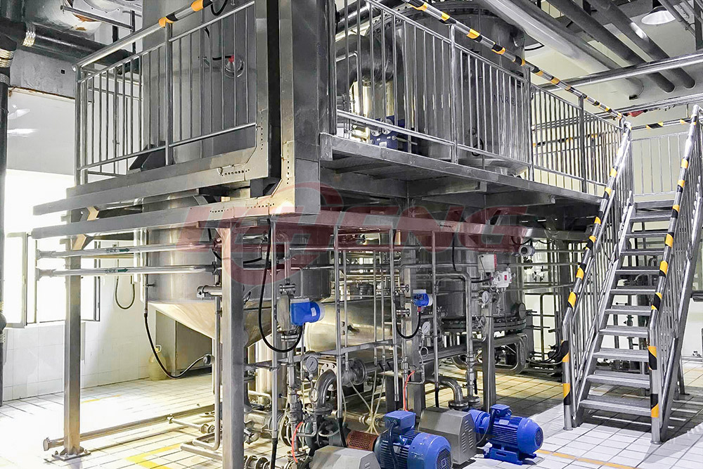 因阿膠液產(chǎn)量增加,原有雙效蒸發(fā)器能源浪費(fèi)嚴(yán)重,自動化程度低。該項(xiàng)目樂恒為東阿阿膠提供了MVR升膜蒸發(fā)濃縮解決方案,該方案具有能耗低、蒸發(fā)能力高、受熱時間短等優(yōu)點(diǎn)。