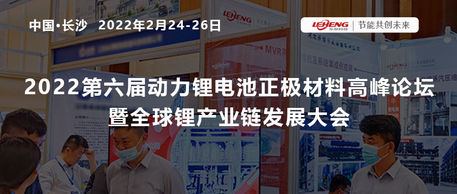 2022年4月24日——26日在長沙大王山朗豪酒店舉行第六屆動力鋰電池正極材料高峰論壇暨全球鋰產(chǎn)業(yè)鏈發(fā)展大會。屆時,樂恒將為您帶來多種鋰電正極材料解決方案,此外,樂恒節(jié)能銷售副總張理威也會針對電池回收行業(yè)為您專業(yè)講解MVR與電池回收行業(yè)的關系,會議主題《樂恒節(jié)能MVR-鋰電池正極材料生產(chǎn)回收行業(yè)的蒸發(fā)及結晶工藝探討》,期待您的到來。