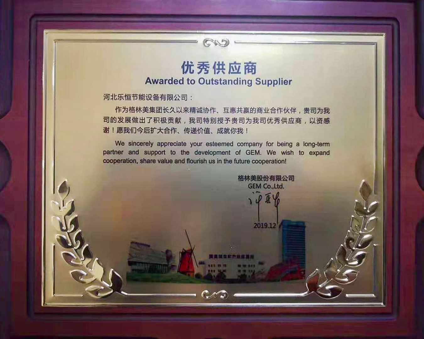 此次是樂恒第二次榮獲優(yōu)秀合作商的榮譽,2019年初次合作,樂恒與格林美便達成了良好的合作關(guān)系,樂恒的MVR蒸發(fā)結(jié)晶系統(tǒng)和樂恒的專業(yè)度受到了格林美的認可,被授予為優(yōu)秀供應(yīng)商。